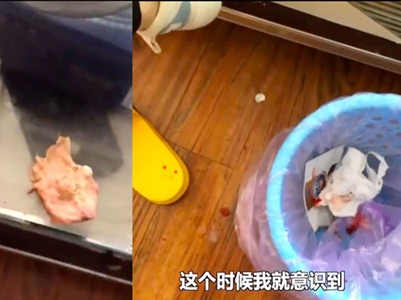 Sau khi định thần và quan sát kỹ hơn, Zhu nhận ra đó là một miếng bông gòn. “Cục bông từ trong mũi tôi rơi ra đẫm máu và bốc mùi hôi thối. Chắc chắn bác sĩ đã để quên một miếng bông gòn trong mũi trong phẫu thuật nâng mũi 6 tháng trước”, Zhu chia sẻ.