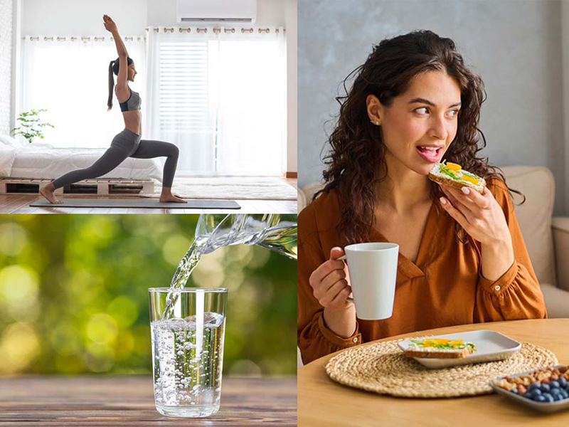 Bắt đầu một buổi sáng với một hoặc hai ly nước là một cách dễ dàng giúp bạn tăng cường hiệu quả giảm cân. Nước có khả năng giúp tăng mức tiêu tốn năng lượng của bạn hoặc tăng lượng calo cơ thể đốt cháy trong ít nhất 60 phút. Theo nghiên cứu, uống 500ml nước giúp tăng trung bình 30% tỷ lệ trao đổi chất trong cơ thể. Ngoài ra, một nghiên cứu khác cho thấy phụ nữ thừa cân khi tăng lượng nước uống hàng ngày lên 2,5 lít/ngày đã giảm 2 kg trong vòng một năm mà không thực hiện bất kỳ thay đổi nào khác trong chế độ ăn uống hoặc tập thể dục. Hơn nữa, nước lọc có thể giúp bạn giảm sự thèm ăn và lượng thức ăn tiêu thụ mỗi ngày. Trong một nghiên cứu ở 24 người trưởng thành, người ta nhận thấy việc uống 500ml nước làm giảm 13% lượng calo tiêu thụ vào bữa sáng. Do đó, hãy bắt đầu buổi sáng của bạn bằng việc uống một cốc nước đầy để bổ sung đủ nước cho thể và thúc đẩy quá trình giảm cân.