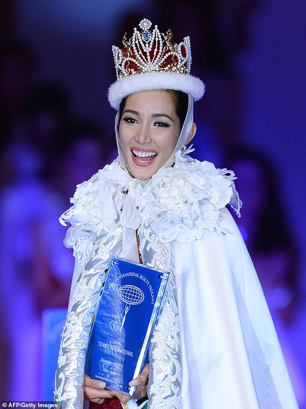 Khoảnh khắc Santiago mỉm cười sau khi chiến thắng Hoa hậu Quốc tế 2013.