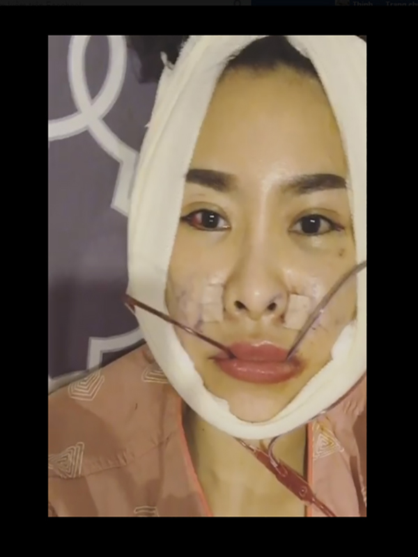 Gương mặt của Kỳ Hân được băng bó chằng chịt.